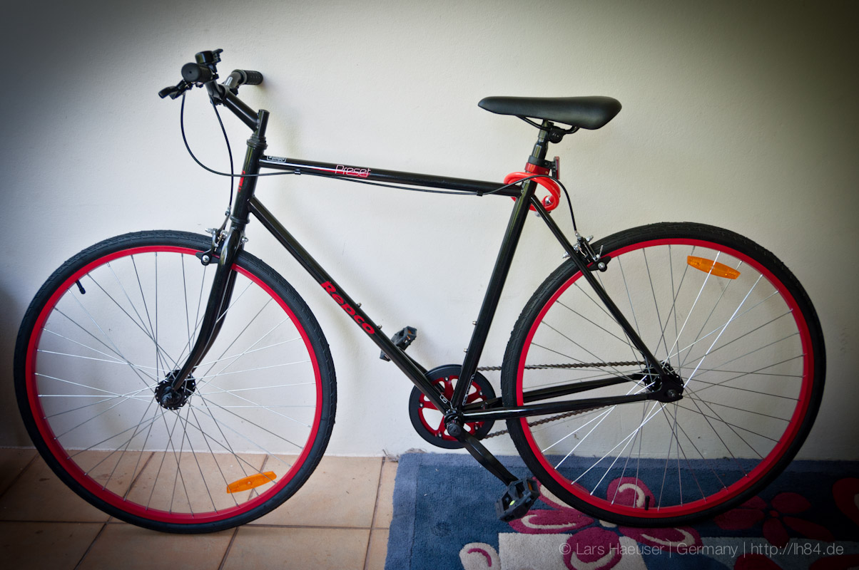 Mein erstes eigenes Fahrrad nach ca. 11 Jahren! Es fährt sich erstaunlich gut, dafür das es nur ein Ein-Gang-Rad (hier auch gerne „fixie“ oder „singlespeed“ genannt) ist. Und es sieht noch schick aus, weil es schlicht und ohne viel Schnörkel ist.