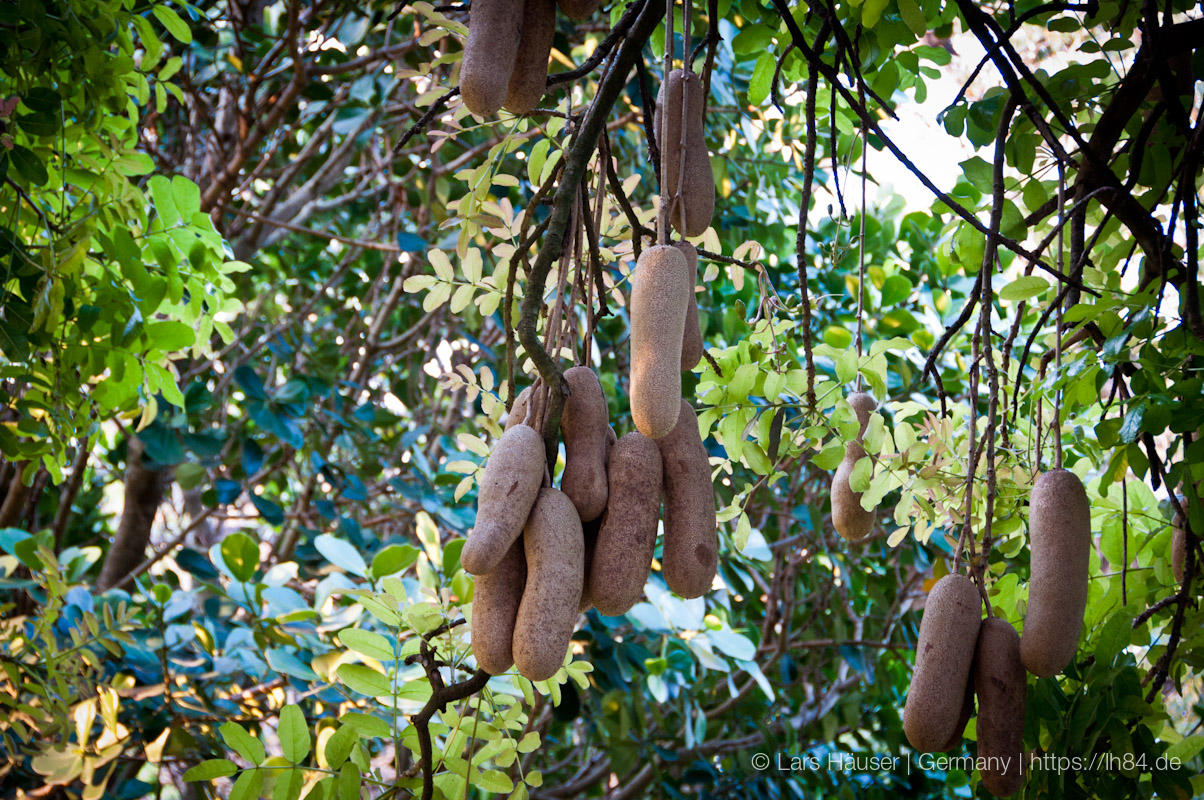 Da die Gegend zwischen Mackay und Fraser Island nichts Spannendes zu bieten hat, legten wir auf dem Weg nach Hervey Bay (Ausgangspunkt für Fraser Island) nur einen kurzen Stopp in Rockhampton ein, um den botanischen Garten zu erforschen. Die eigentliche Intension lag darin, Koalas in dem kleinen angegliederten Zoo zu sehen. Jedoch war gerade der Teil der Anlage wegen Renovierungen geschlossen. Trotzdem war der botanische Garten und der kleine Zoo sehr schön und wir genossen den frühen Abend. Wir entdeckten sogar ein Sausage-Tree also ein Wurstbaum :).
